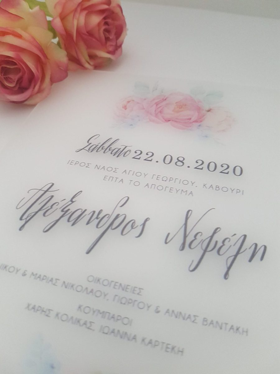 Προσκλητήριο γάμου plexi glass αμμοβολή τυπωμένο