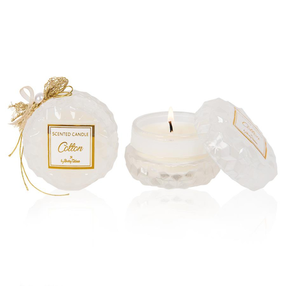Το αρωματικό κερί White Cotton είναι ένα εκλεπτυσμένο λευκό κερί σε κομψή γυάλινη συσκευασία, ιδανικό για δώρο ή μπομπονιέρα.